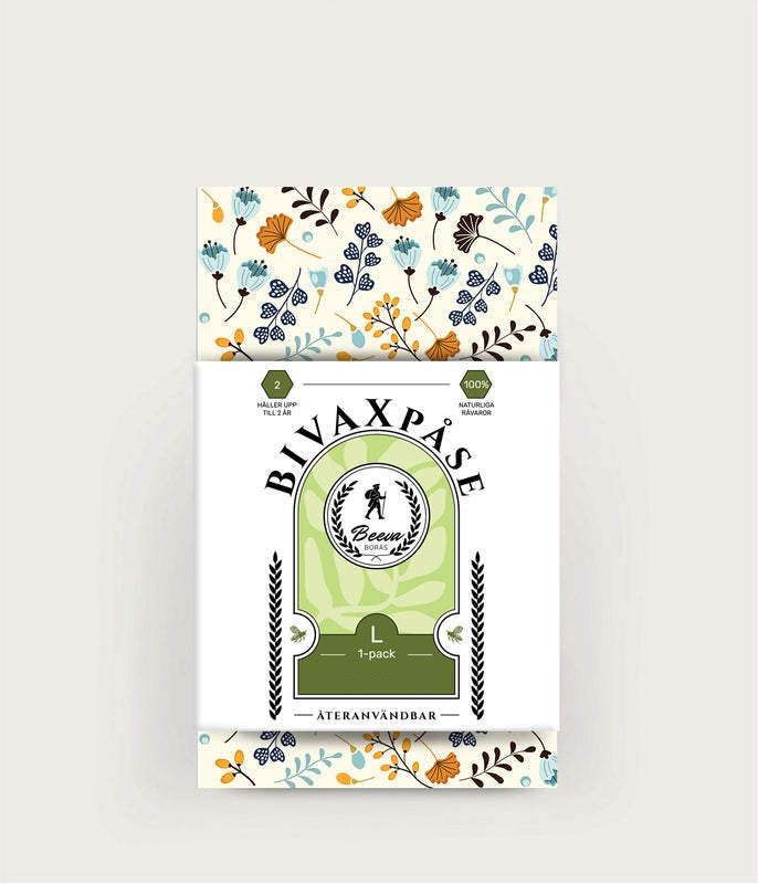 Förvara maten på ett hållbart och naturligt sätt med Beeva Bivaxpåse L – Blomsteräng.